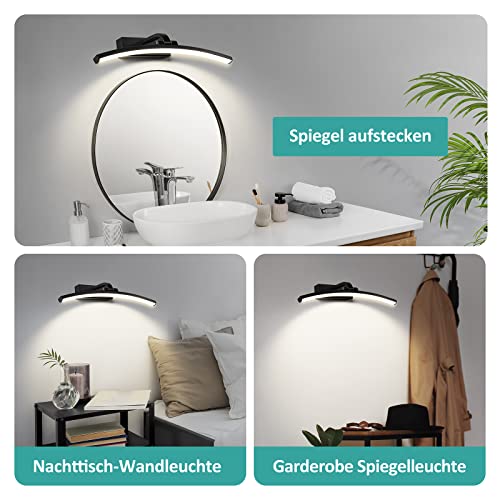 【Flexible Ausrichtung】Die einzigartige schwarz spiegellampe badezimmer lässt sich um 180° drehen, um die Lichtausrichtung individuell anzupassen