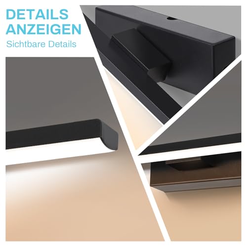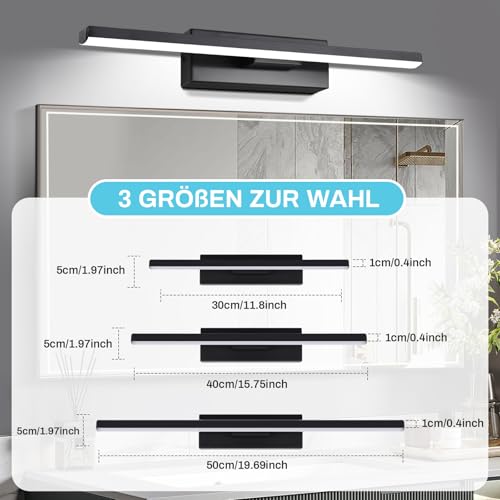 SERBASIC LED Spiegelleuchte Badwand 330°Drehbar Lampe Badezimmer,30cm 6W 600LM Badezimmer Lampe 3 Farbiges Licht Wand Lampen für bad,Spiegellampen,Schminktisch Beleuchtung Schwarz