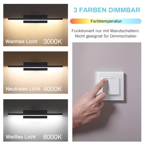 3 farbwechselnde Lichter: 3-wechselnde Farbe 6W Wandlampe (Warm White 3000K, Natural 4500k, Cold White 6000K), Lichtquelle ist LED-Chips, Drücken Sie einfach den Schalter, um die Farben der Lichter nach Ihrer Stimmung oder Umgebung einzustellen. (Beachten Sie, dass die Helligkeit nicht dimmbar ist)