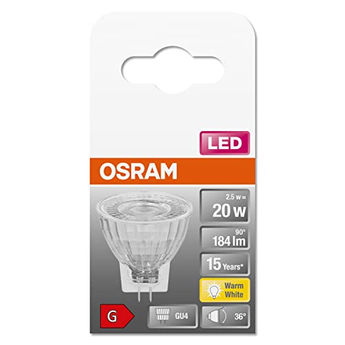 OSRAM MR11 LED Reflector Lamp with GU4 Socket, Warm White (2700 K), Glass Spot, 2.5 W, Replacement for 20 W Reflector Lamp, LED Star MR11 12 V, Warm White