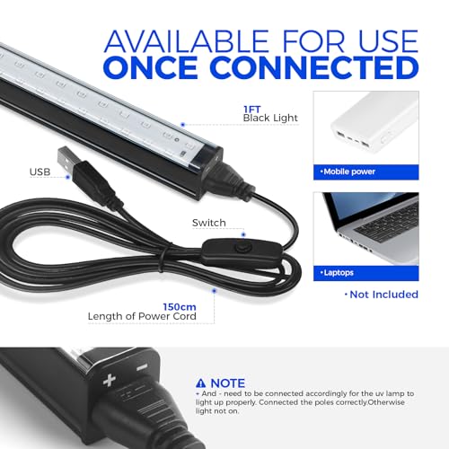 Plug and play: DC 5V USB power supply, 10W LED portable black light lamp can be used anywhere. Simply plug into any USB device, such as rechargeable battery, USB adapter, computer, laptop