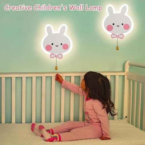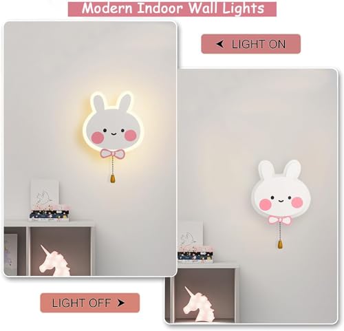 【Bunny Form Wandleuchte Design】: Die einzigartige Hasen schafft eine warme und behagliche Atmosphäre. Wandlampe mit Zugschalter Kinder, Während es die Atmosphäre des Raumes verschönert, kann es auch die Fantasie der Kinder fördern. Wand Leselampe Kinderzimmer mit Schalter einfaches aussehen, weiche und komfortable Beleuchtung ist sehr gut für Kinder baby.