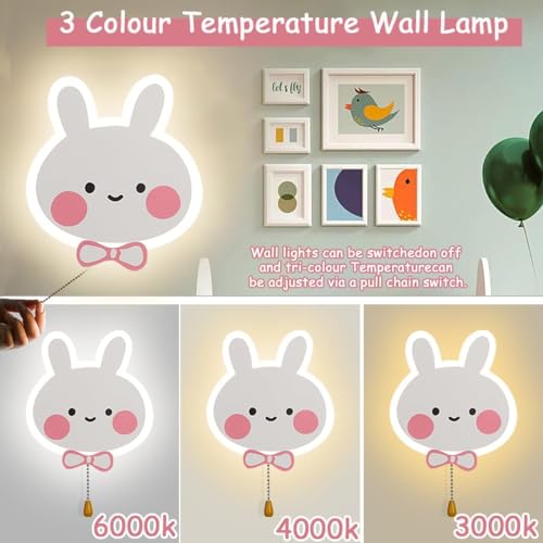 【Innen Wandlicht mit Schalter】: Junge Mädchen kinder Schlafzimmerlampe mit Zug-Schalter, kreative Wand Kinder Lampe dekorieren, einfach zu bedienen, 3000k Warmweiß, 4000k Naturweiß, 6000k Kaltweiß, Sie können drei Farbtemperaturen entsprechend Ihren unterschiedlichen Anforderungen wählen.