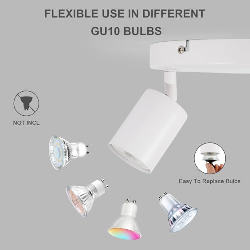 【Easy to Install】Der gu10 deckenlampe kann als Deckenleuchte und Wandleuchte verwendet werden, Sie können die Halterung an der Decke/Wand montieren; Kommt mit Installationszubehör und Bedienungsanleitung, bieten schwarze Saugnäpfe, können Sie leicht installieren und die Glühbirnen ersetzen; Wenn Sie irgendwelche Fragen haben, kontaktieren Sie uns bitte