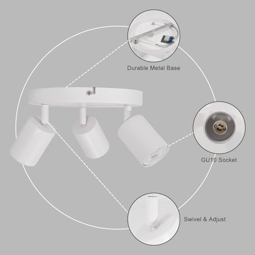 【Weit Verbreitet】Weiß Aussehen mit runder Basis, macht den eleganten runden deckenlampe 3 spots kann perfekt in jeden Wohnbereich integriert werden; weiß deckenstrahler strahler kann in Schlafzimmern, Wohnzimmern, Fluren, Eingängen, Küchen, Büros, Esszimmern, Garagen und so weiter verwendet werden