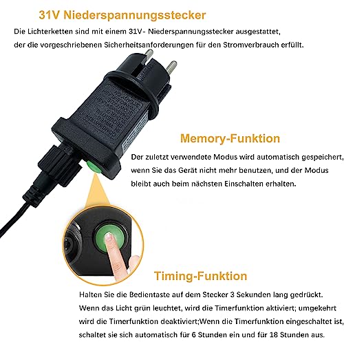 Multi-size and multi-mode choice: 10/20/30 m warm white/colourful fairy lights with 3 metre extension cable + 100/200/300 LEDs, 8 different light modes, meet your needs in different scenes